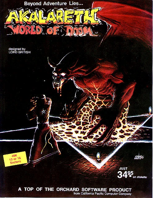 Akalabeth: World of Doom is the unofficial Ultima 0, created by Richard Garriott in 1979 and released commercially in 1980 for the Apple II.
