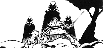 The Stranger returned for a third time. This time, three companions fought at the hero's side to defeat Exodus. Meeting the Time Lord, the Stranger knew that Exodus couldn't be defeated by normal means. Going to the lost island of Ambrosia, the Stranger recovered the Four Cards. Sailing to the Castle of Fire then, they fought their way through Exodus' guards, before reaching the core of the machine. Inserting the Cards, the Machine exploded, thus being the end of Exodus and the last Age of Darkness.