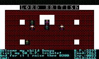 In Ultima I, Lord British was found in his castle in the Lands of Lord British. He was at the very least co-ruler of one of the four major Sosarian continents at this time, if not ruler in full. Still young, he was the only one of the rulers who had a vision of a united Sosaria.[4] The Castle of the Lost King also stood in Lord British's lands had an active court at this time, although it is unclear if its name implied that British's co-ruler was absent or if the title of "Lost King" was simply an eccentric appellation taken by a second monarch. With the land still plagued by Mondain, Lord British held his amulet absent-mindedly, and wished for a champion to appear. Within days the Stranger appeared in Sosaria, seeking to secure Mondain's final defeat. [5] During this quest, Lord British would provide the hero an audience, sending them on an appropriate quest and proffering a reward upon its completion. When the Stranger returned from the past, with the Gem of Immortality destroyed, the surroundings were different and Lord British appeared as a stately youth in violet robes; in gratitude, he ordained the entire realm of Sosaria to be at the champion's service.