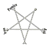 In the performance of Sorcery, one must use rituals, reagents, foci, magical words and a specially designed protective circle, called a pentacle or pentagram for the five-pointed star confined within. The tremendous powers of Pyros are released in great gouts of flame, and only a trained Sorcerer would dare to call upon them. Even then, the pentacle is required to keep the Sorcerer from being consumed along with the reagents.